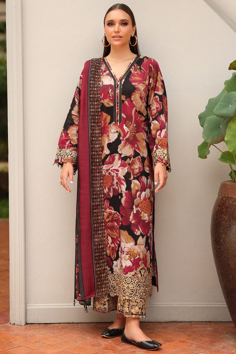 SR-BQ38 Digital Printed Khaddar Suit 3pc with Khaddar Digital Printed Dupatta & Embroidered Patches